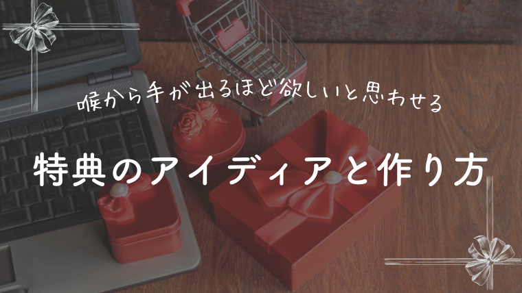 特典は、お客様に「何か得られる」という印象を与え、お客さんが一歩をふみだしやすいようにしてあげる必要があります。